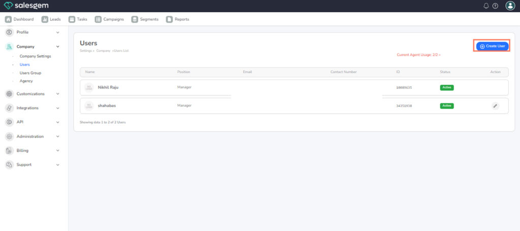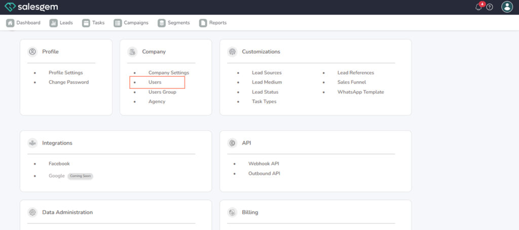 - Go to Settings → Company → Users.