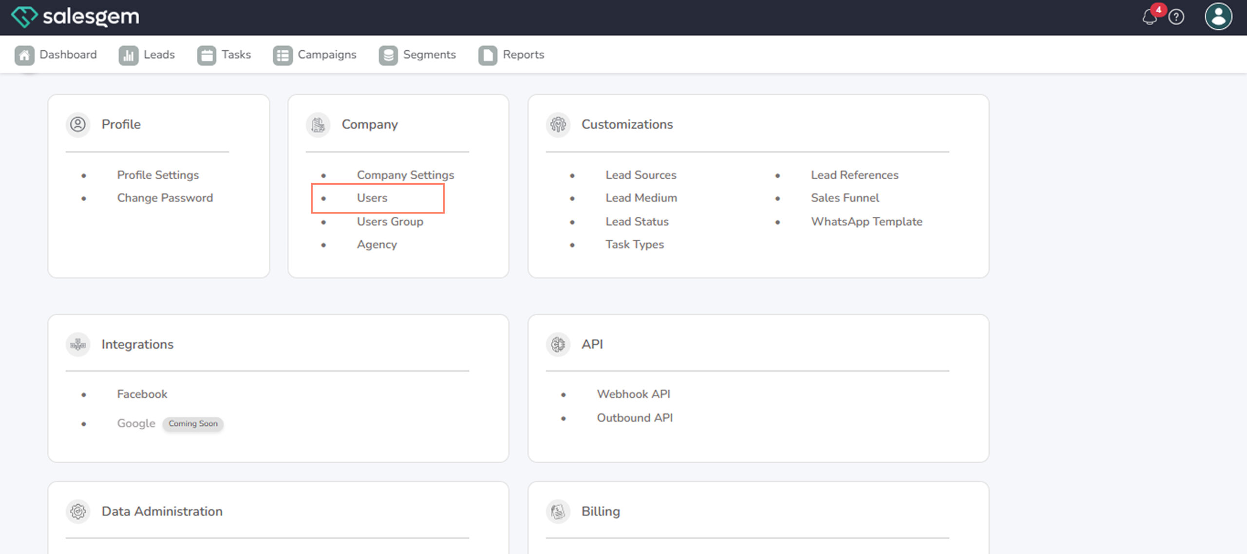 - Go to Settings → Company → Users.