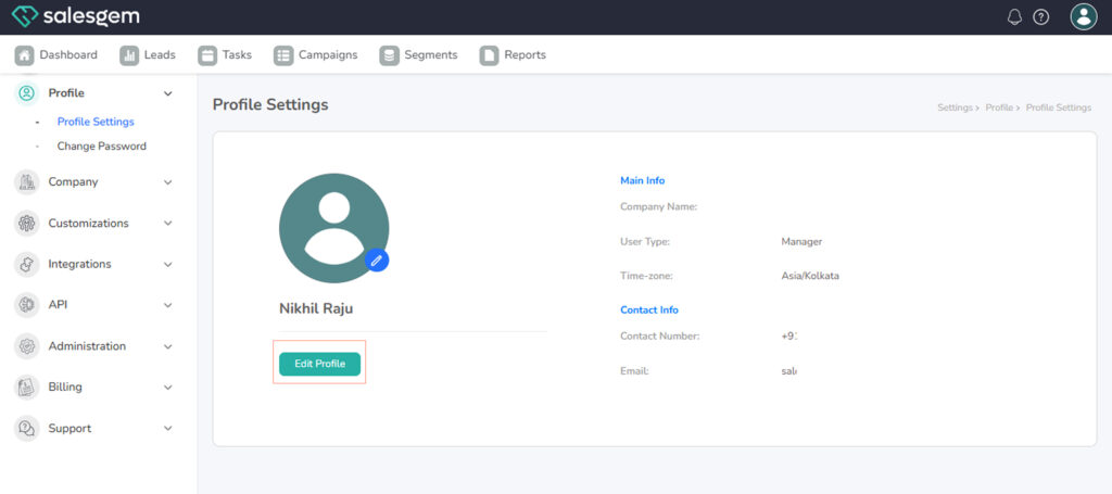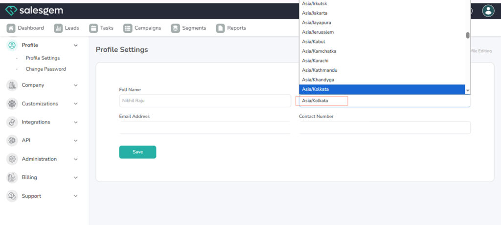 Changing your timezone in Salesgem ensures that all activity logs and reports reflect the correct local time.