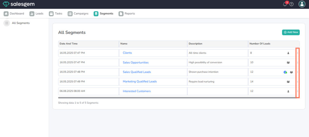 - Go to Segments in Salesgem.