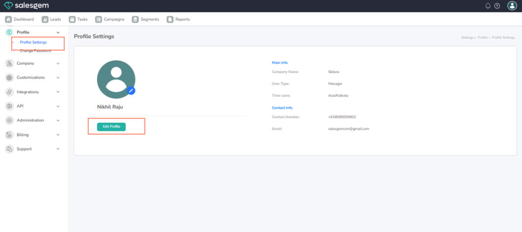 Your display name appears in tasks, activities, and lead records in Salesgem.