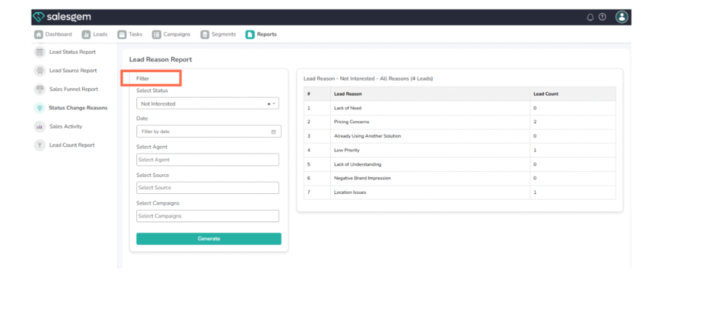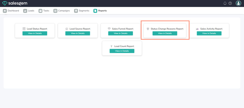 This report tracks why a lead’s status was changed, helping sales teams analyze deal progress and identify problem areas.